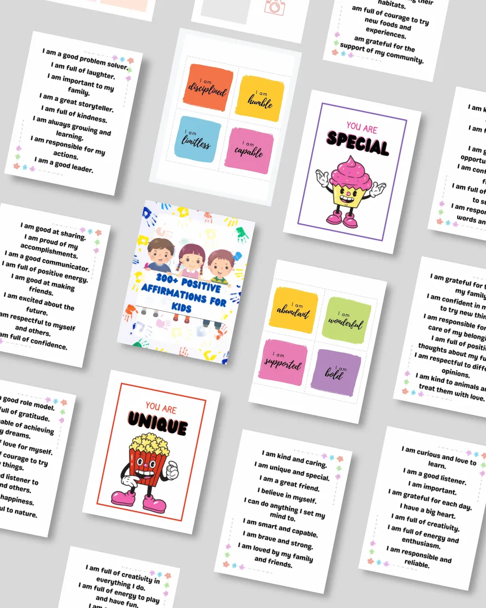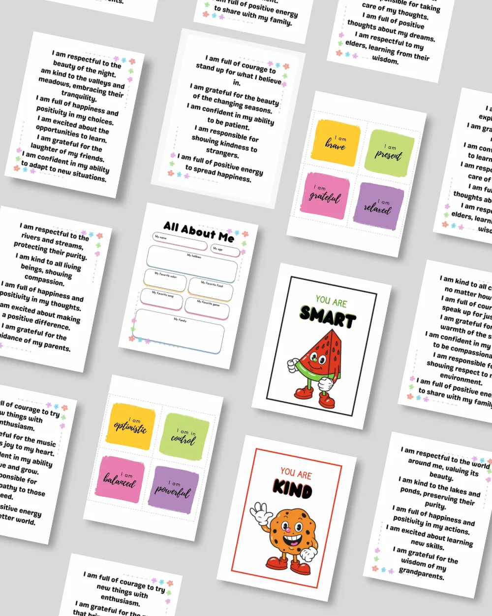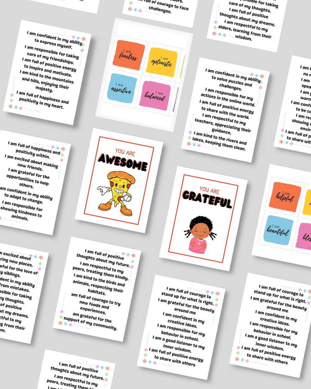 Educational flashcards and printable affirmation cards to support visual learning and confidence-building.