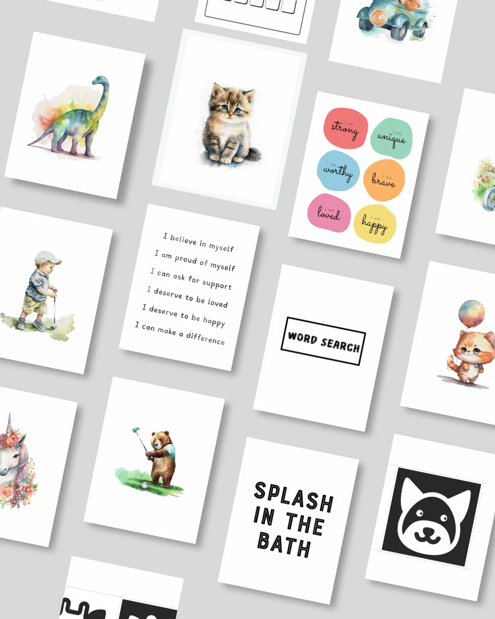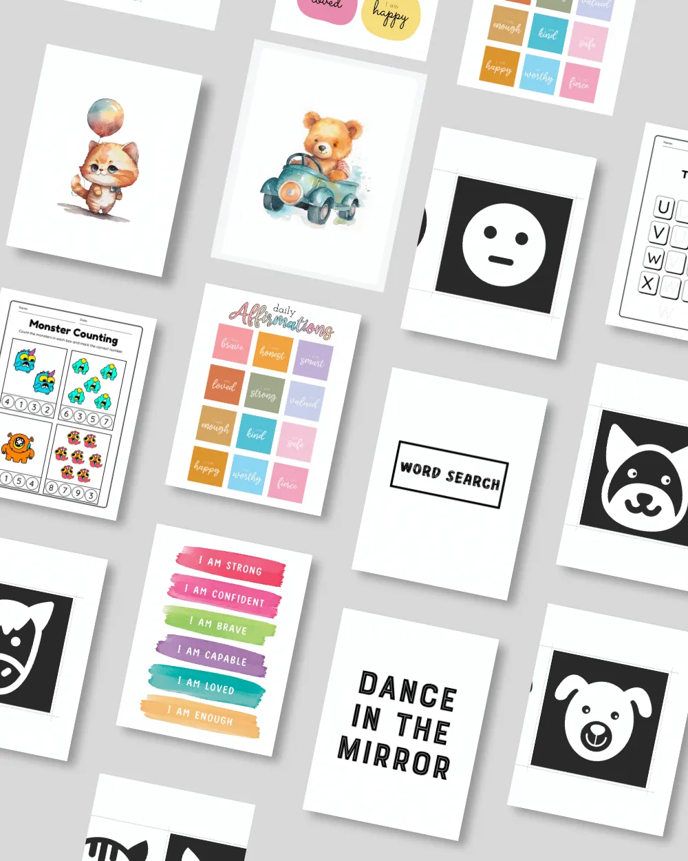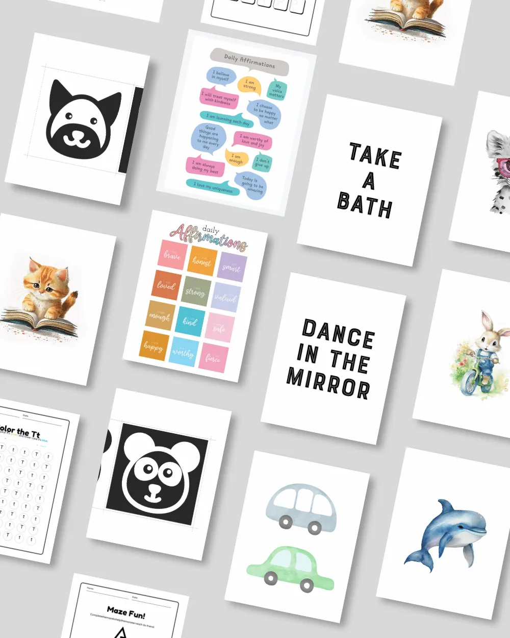 Educational flashcards and printable affirmation cards to support visual learning and confidence-building.
