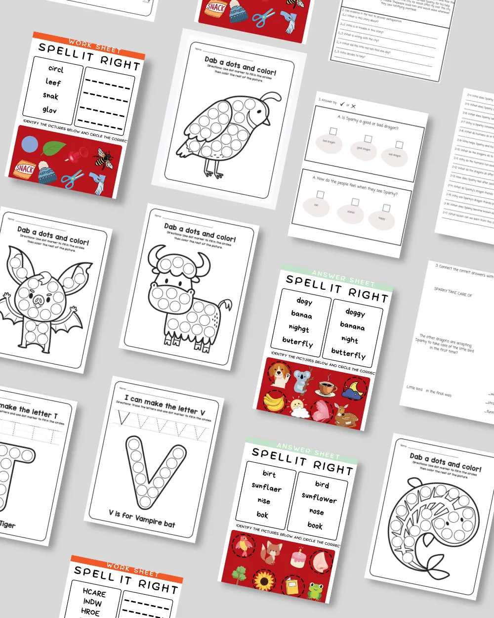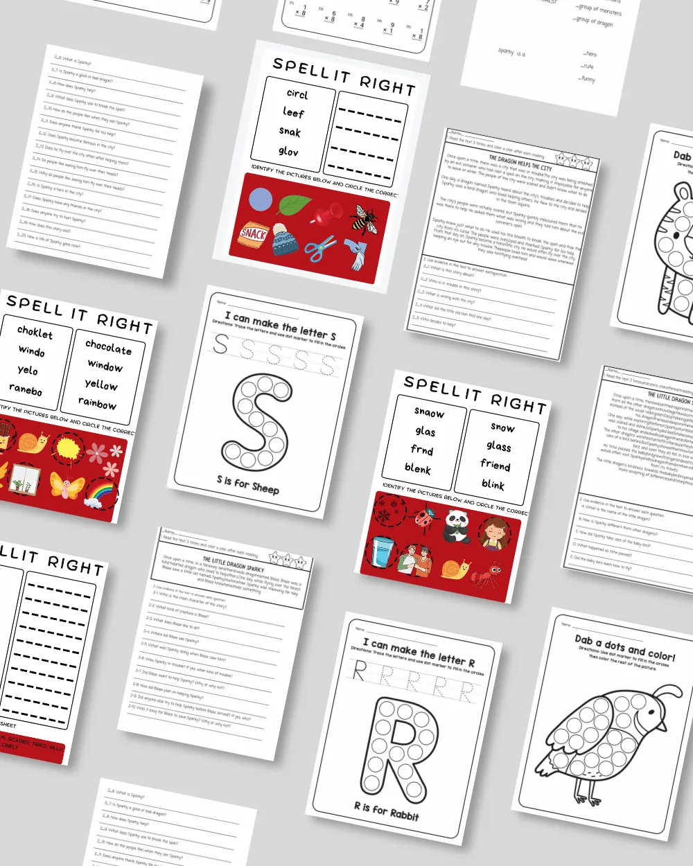 -Reading & Spelling sheets