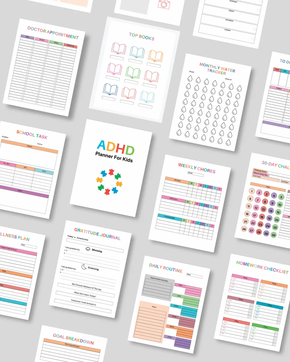 Planners, reward charts & creative worksheets